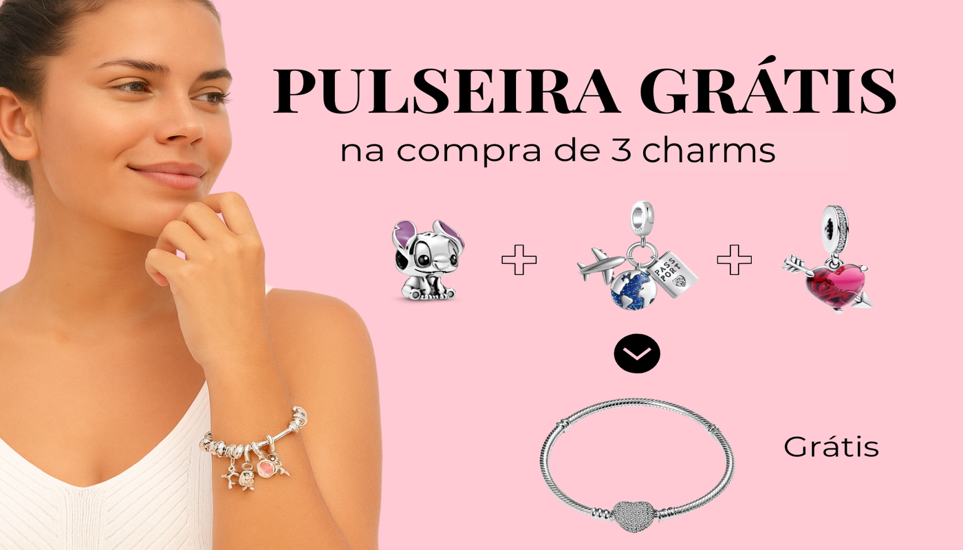 Compra 3 charms, recebe pulseira grátis